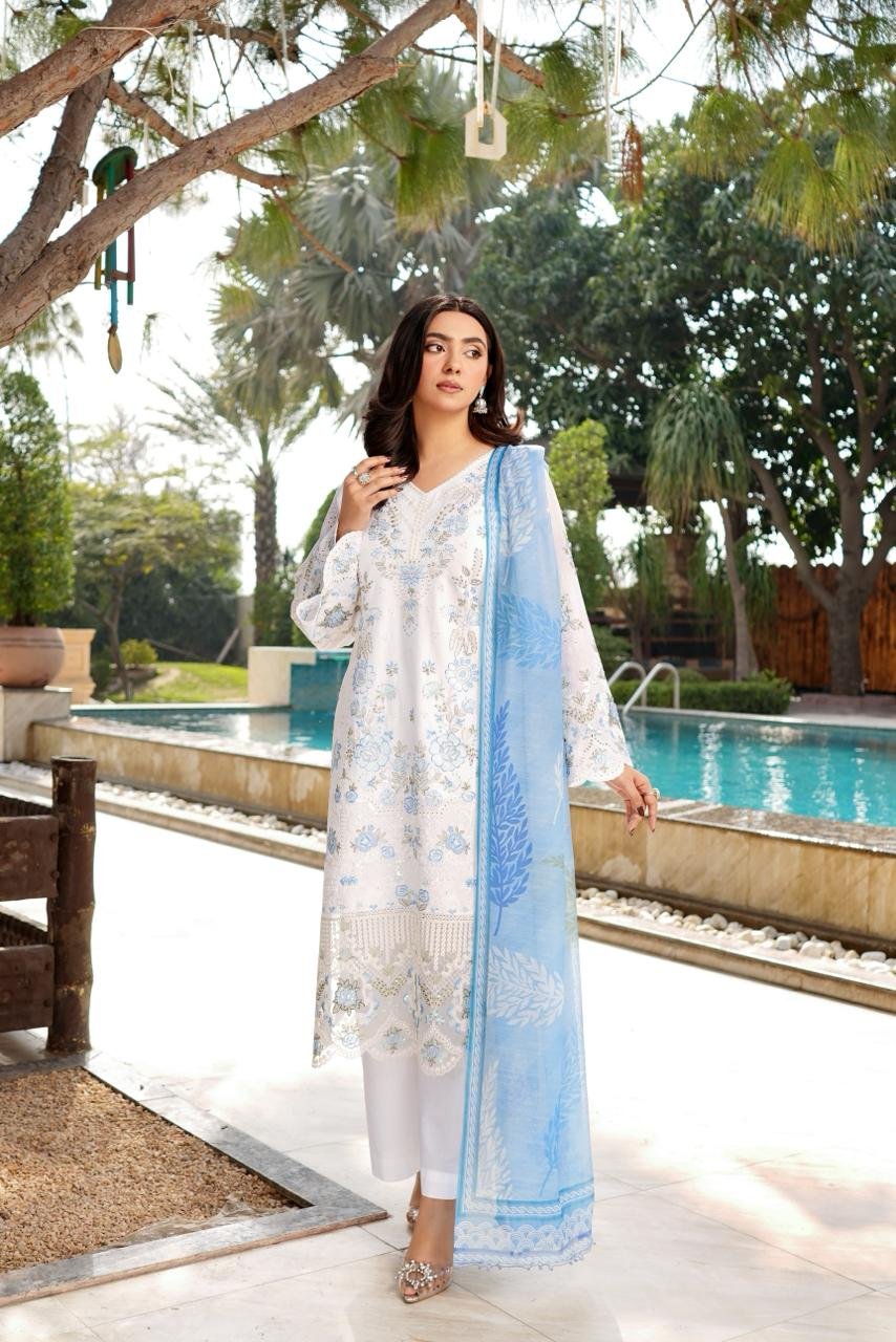 Aima blends modern lines with classic craftsmanship. Dense embroidery paired with subtle sequin work creates luxurious outfits ideal for elegant occasions.
